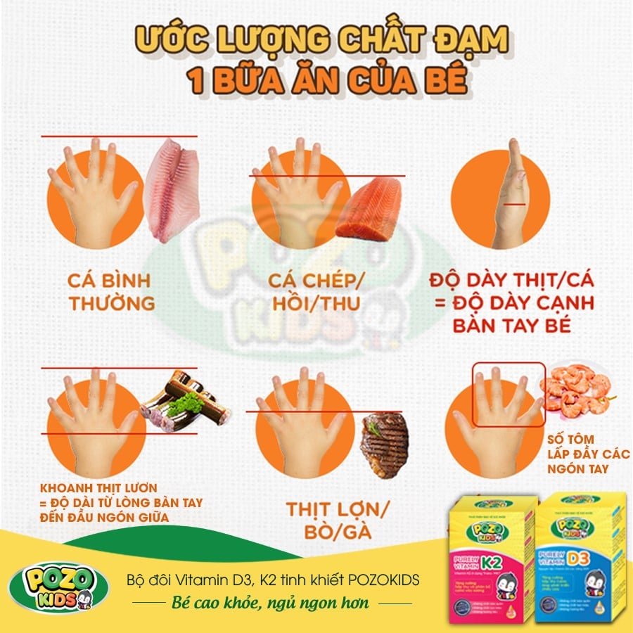 Cụ thể, mẹ có thể ước lượng các loại chất đạm 1 bữa ăn của bé như sau: